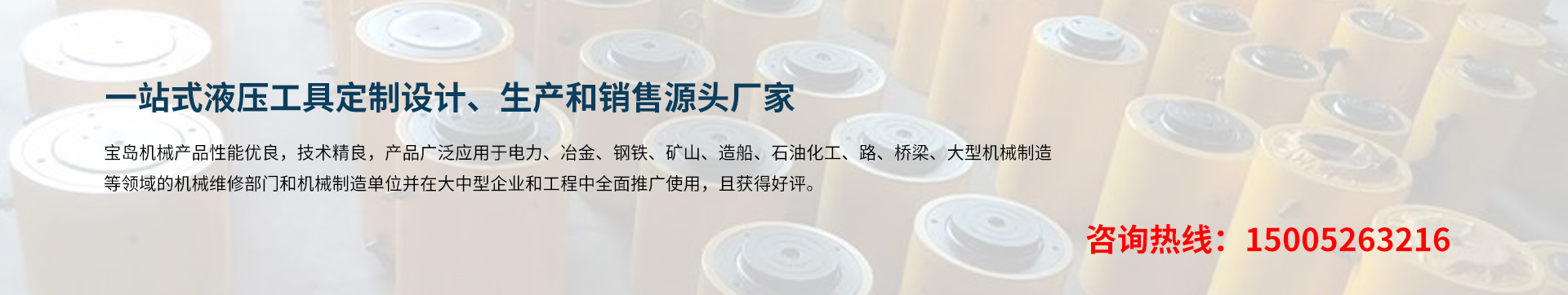 泰州市寶島機械制造有限公司位于長江三角洲著名的工具制造基地 -- 江蘇泰州。京滬、寧通高速公路,新長、寧啟鐵路貫穿全境。交通運輸條件十分便利。 BDYYJX寶島機械制造公司專業(yè)生千斤頂、液壓千斤頂、電動液壓千斤頂、大噸位千斤頂、薄型千斤頂、橋梁千斤頂、同步液壓千斤頂、空心千斤頂、自鎖式千斤頂;液壓螺母、液壓螺栓拉伸器;液壓扳手、電動(手動)液壓扳手;液壓彎管機、電動(手動)液壓彎管機、液壓彎排機;試壓泵、電動試壓泵;軸承加熱器、微電腦軸承加熱器、感應拆卸器;液壓拉馬(拔輪器)、電動小車式升降液壓拉馬;螺帽破切器、液壓沖孔機、液壓平彎機、液壓開孔器、母線加工機、電動液壓升降(平臺)機等液壓工具。 是國內(nèi)液壓機電業(yè)配套的綜合性企業(yè),服務于國內(nèi)各類大中型企業(yè)。 寶島機械產(chǎn)品性能優(yōu)良,技術(shù)精良,產(chǎn)品廣泛應用于電力、冶金、鋼鐵、礦山、造船、石油化工、路、橋梁、大型機械制造等領(lǐng)域的機械維修部門和機···